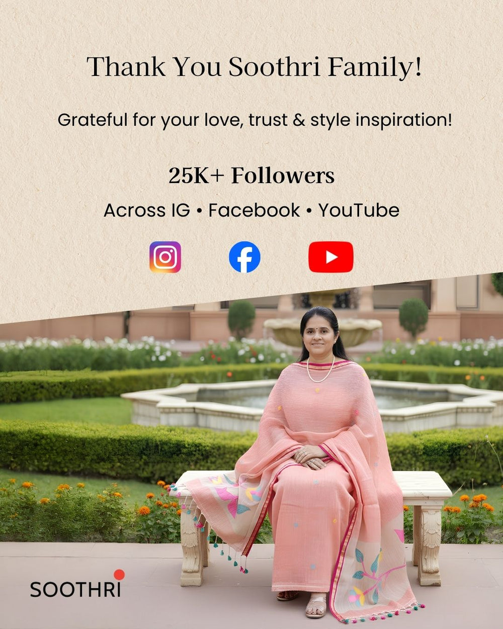 Founded by Luxmi Kataria, an engineer (B.Tech, M.Tech) with 7+ years in the corporate world, Soothri was born from her love for Indian textiles ๐Ÿงต and her understanding of ambitious women seeking ethnic wear that is comfortable, meaningful, and modern.